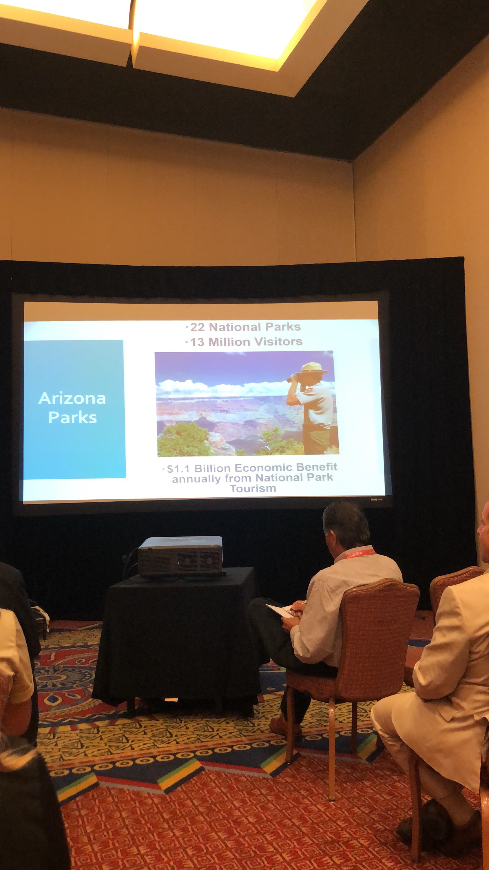 The breakout sessions were a great way to learn more about the different facets of tourism. I was a panelist on a session called “Put Tourists on Your Trail: How to Develop Outdoor Adventure Concepts That Appeal to Niche Visitors” with Maya Azzi from Local First Arizona and Andrew Grossman from Travel Oregon. We had a great turnout and I spoke about the economic and health benefits of trails as well as my Tusayan Community Trails project.